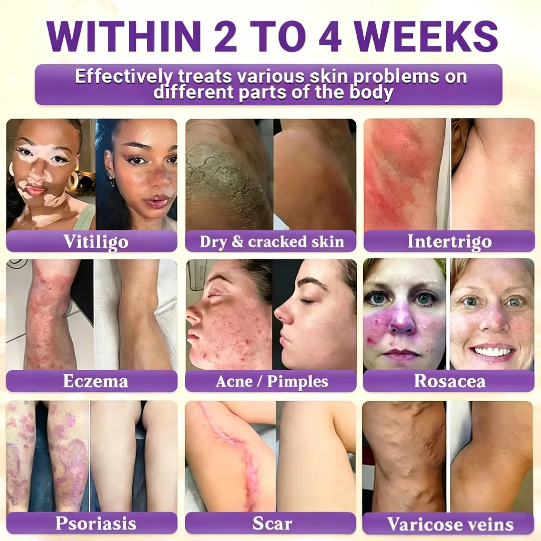 ✅ Multi-Functional Formula: This powerful cream targets multiple skin concerns — including scars, acne marks, sagging skin, purpura, pigmentation, dryness, moles, warts, inflammation, as well as fungal, bacterial, and intimate discomforts. Through anti-inflammatory, brightening, and firming repair, it restores the skin’s smoothness, health, and youthful glow.