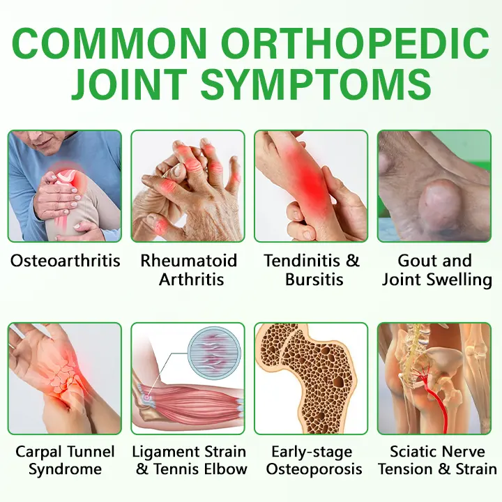 It effectively supports a wide range of joint and muscle issues, including osteoarthritis, rheumatoid arthritis, tendinitis, bursitis, gout, carpal tunnel syndrome, ligament strain, tennis elbow, early-stage osteoporosis, and sciatic nerve tension.