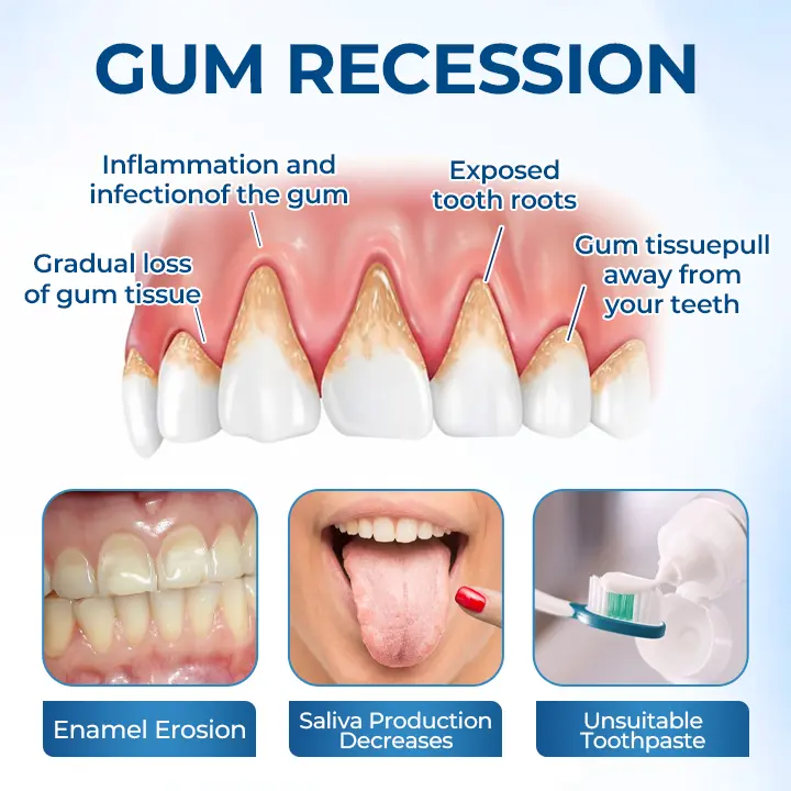 Periodontitis is a progressive gum disease driven by bacterial infection and chronic inflammation.As we age — particularly after 30 — enamel gradually thins and saliva production decreases, making gums more vulnerable to erosion, sensitivity, and recession. Poor oral hygiene habits or long-term use of highly abrasive toothpastes can further aggravate the gums, accelerating periodontal tissue damage and compromising oral health.