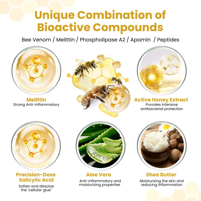 ✅ Dual-Action Immune Shield (Anti-Relapse) – A synergistic blend of Bee Venom and botanical lipids reinforces your skin’s moisture barrier, “re-educating” the local immune system to prevent future flare-ups and maintain long-term clarity.